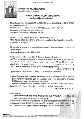 Cliquez sur l'image pour accèder au compte rendu du conseil du 26 Novembre 2011.